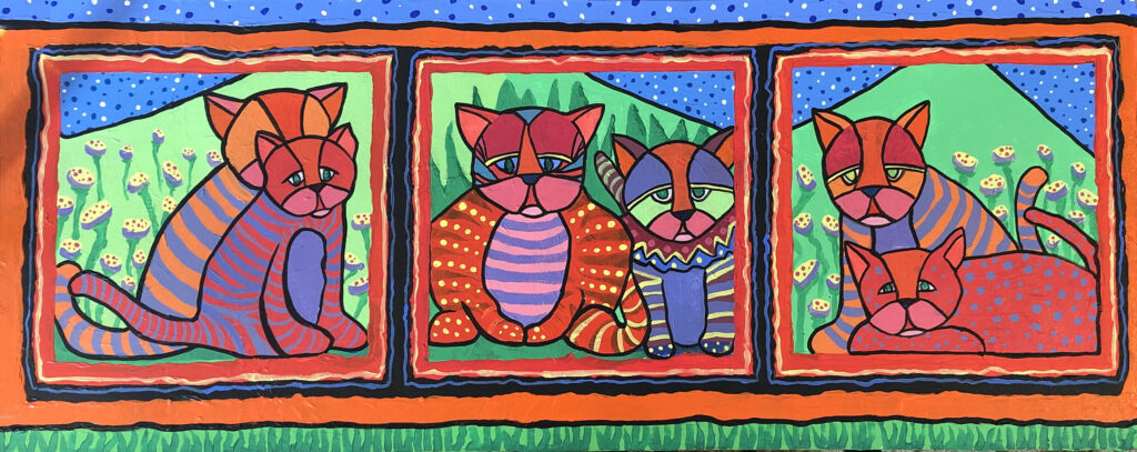 My paintings became more colorful and animals kept showing up in everything I painted. I also started playing with mixed media.